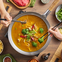 Choose a commercial wok that is made in either a Cantonese or a Mandarin style to suit the dishes you're making. Whether you want a wok that's a few inches wide or you need one that's a few feet in diameter, our options will help you find what you need. Depending on the type of control you like to have as you cook, you can use a stainless steel wok with one long handle or two side handles. Make sure to season your cast iron or carbon steel woks for the best results.