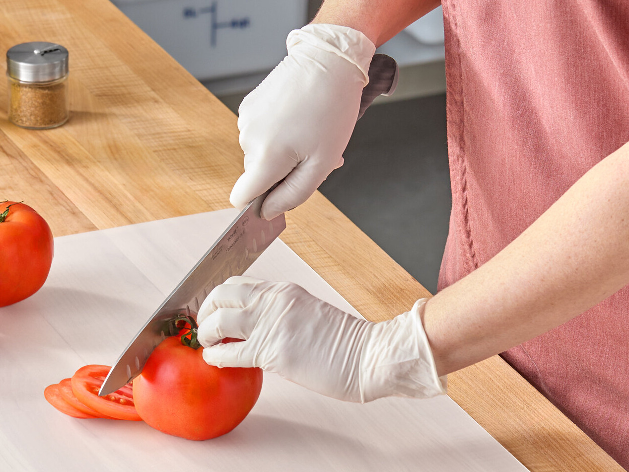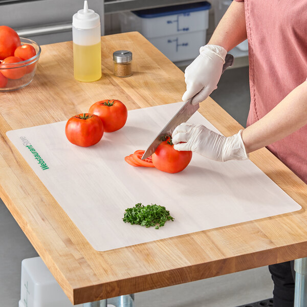This cutting board is perfect for cutting up brownies in the baking tray. I used to chop them up on the table but it would make such a mess with crumbs flying on the table and the floor. I cut this board to fit the baking tray and chop the brownies up in the tray so the crumbs stay in the tray and there is less cleanup. This way the tray is protected from knife damage and the brownies are not touching the aluminum.