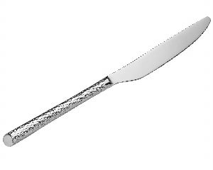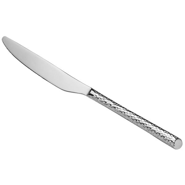 With its hammered design, the handle on this piece of flatware catches and reflects light, providing a unique look and feel. It is beautifully hand-polished for a mirror shine finish and sleek appearance that will enhance your dining area and your customers' experience.