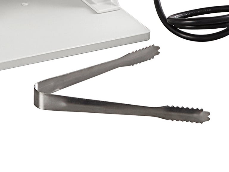For added convenience, a set of tongs is included so that you can feed your product into the hopper, ensuring your employees will safely handle the machine!