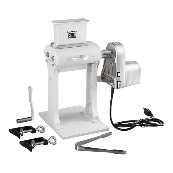 A 2 speed electric motor attachment is included that mounts easily onto the tenderizer for faster, easier processing than manual alternatives.
