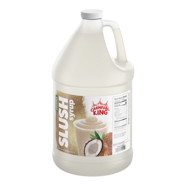 Carnival King offers great flavors at a great value, and this sweet coconut flavor enhances the appearance, color, and taste of your icy cold drinks. The colors and flavors are sure to boost impulse sales. Perfect for fairs, stadiums, or other special events, this Carnival King slushy syrup helps you quickly and easily prepare your customers' favorite cold summertime treats at an affordable price!