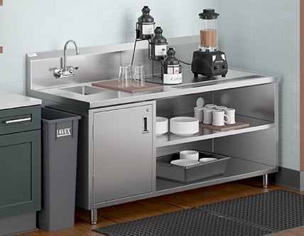 Include worktable preparation stations in your kitchen so your staff can prep ingredients for the day without taking up valuable counter space.