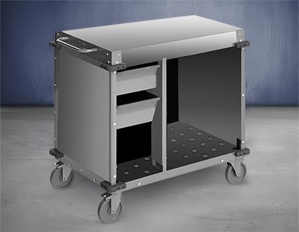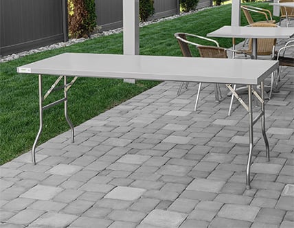 Portable work tables can be moved and arranged throughout your kitchen to promote flexibility and space optimization without sacrificing functionality.