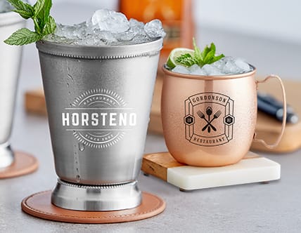 Select from a wide range of custom glassware, including beer glasses, wine glasses, shot glasses, mugs, and more.