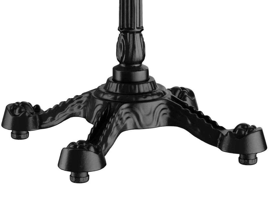 These table bases are beautiful and extremely heavy. I put 36x36 table tops on and it was way to big- tried 30x30 and it still tipped if you put pressure on the corner. finally had to settle for 24" round tops, which is really small but they are sturdy.