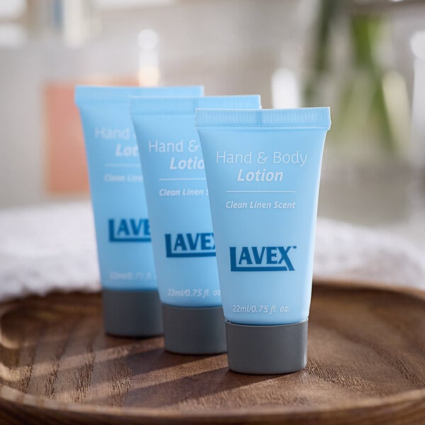 Pair this Lavex 0.75 oz. hotel and motel hand and body lotion with other products from the line, and offer your guests a complete bath amenity set to enhance their overnight experience.