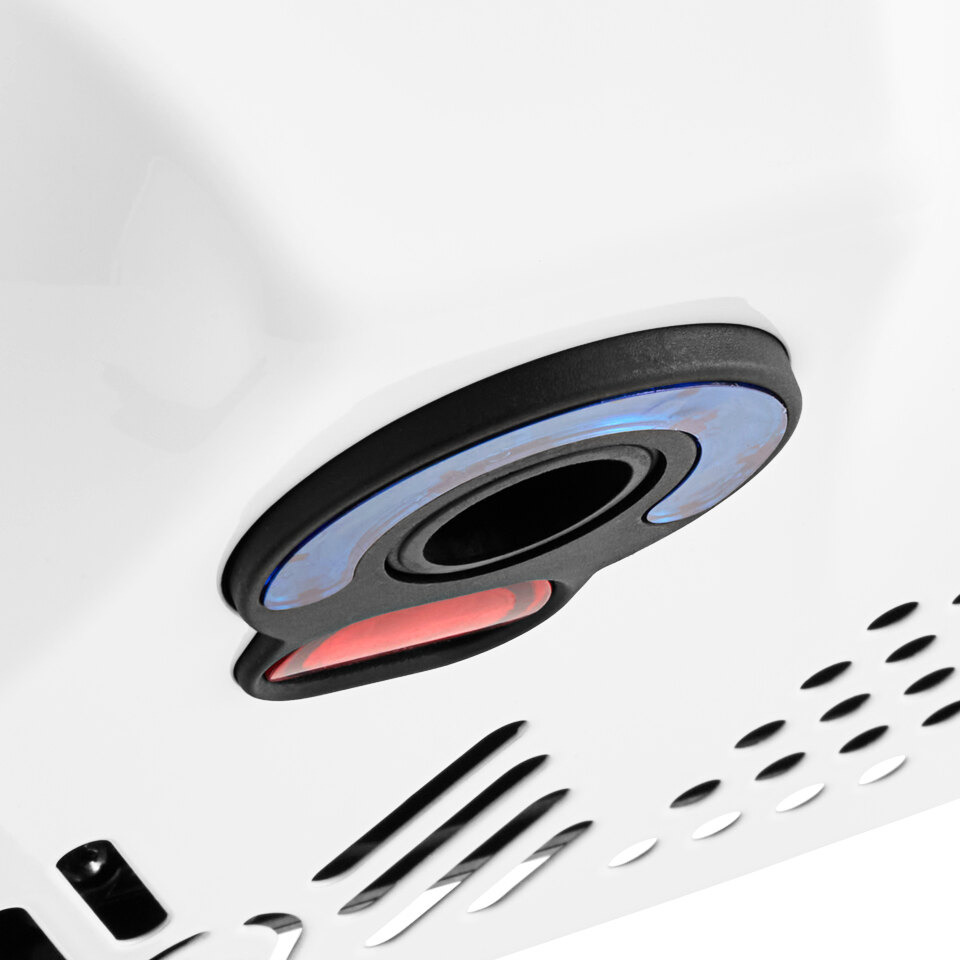 This hand dryer boasts hands-free activation thanks to its automatic infrared motion sensor, which includes an adjustable sensitivity range of 2" to 5 15/16" (5 cm to 15 cm). This allows you to adjust the sensor's detection range to suit your space and usage needs. The blue LED light helps indicate the correct hand placement for activation.