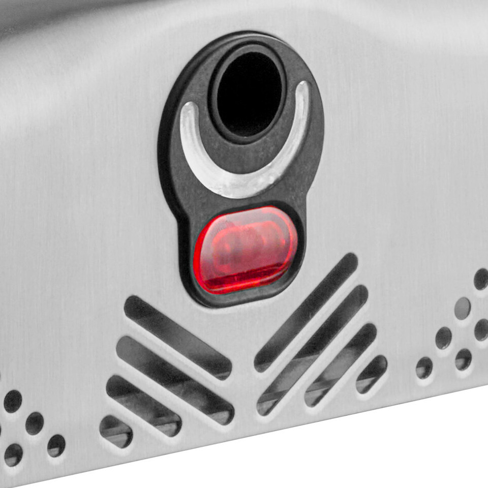 This hand dryer boasts hands-free activation thanks to its automatic infrared motion sensor, which includes an adjustable sensitivity range of 2" to 5 15/16" (5 cm to 15 cm). This allows you to adjust the sensor's detection range to suit your space and usage needs. The blue LED light at the bottom of the dryer helps indicate the correct hand placement for activation.