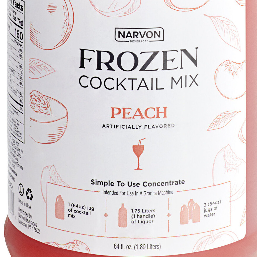 Crafted with premium ingredients, this mix features a ripe, sweet peach flavor that your guests are sure to love. Designed for use with alcohol, this concentrated mix makes it easier than ever to offer trendy frozen cocktails at your establishment. Provide frozen peach cocktails as a refreshing treat on your outdoor patio, use them to turn a profit at your concession stand or snack bar, or serve them as a poolside treat at your club or resort! Dress up your frozen cocktails with eye-catching garnishes for an adult refreshment that will keep your customers coming back for more.