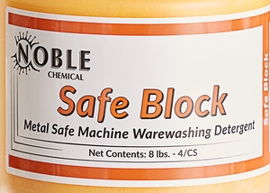 Noble's Safe Block detergent is designed to remove grease and food buildup on your dishes to improve their appearance after warewashing.