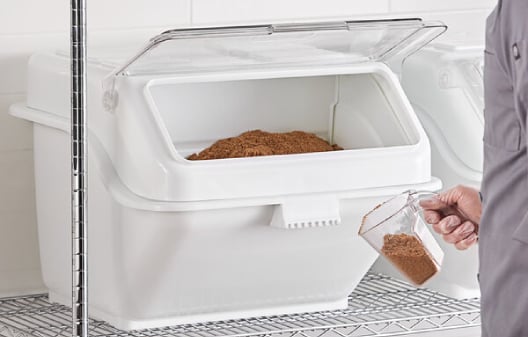Baker's Lane ingredient bins are designed to store bulk dry goods like flour, sugar, and rice and protects them from going stale or becoming contaminated.