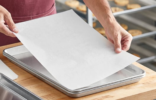 Line your bakery's sheet pans with Baker's Lane parchment paper and pan liners to create a non-stick surface for your baked goods.