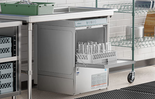 Noble Warewashing undercounter dishwashers can be installed beneath your food prep surfaces or counter to save valuable floor space in the kitchen.