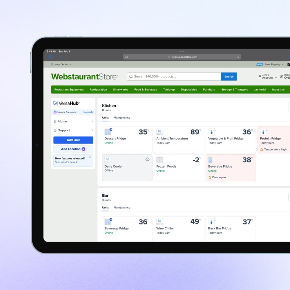 Easily add and manage your commercial equipment on the go with VersaHub, your mobile-friendly business and asset management solution from WebstaurantStore. Access assets from any device, organize and monitor equipment, and manage maintenance seamlessly through an intuitive interface. Enjoy effortless dashboard monitoring without additional logins.