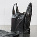 Provide your customers with a convenient way to carry purchased merchandise by bagging items in this Choice 1/8 size .63 mil black unprinted embossed medium-duty plastic t-shirt bag! Made from high-density polyethylene, this glossy, black bag is built strong to resist rips and tears while in use.