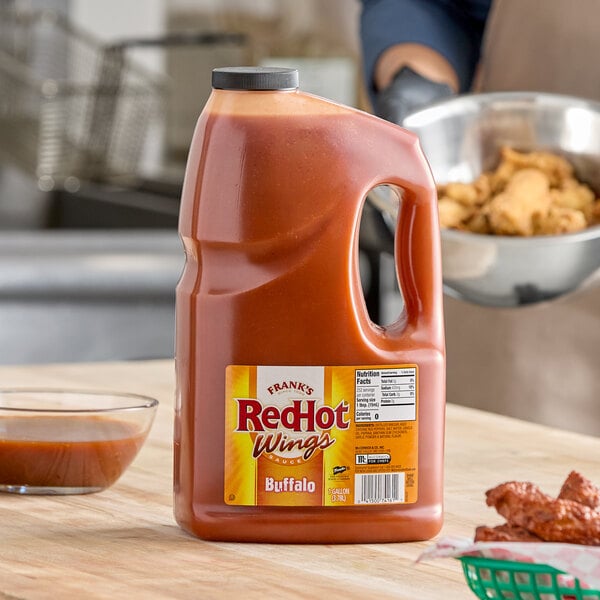 Its convenient handle and resealable cap make it easy to transport, store, and even dispense into smaller bottles for table service so your patrons can add just the right amount to their foods. Hot, spicy, and delivering flavor that will tempt your customers back for more, Frank's RedHot Buffalo wing sauce is a top choice full of original, flavorful taste!