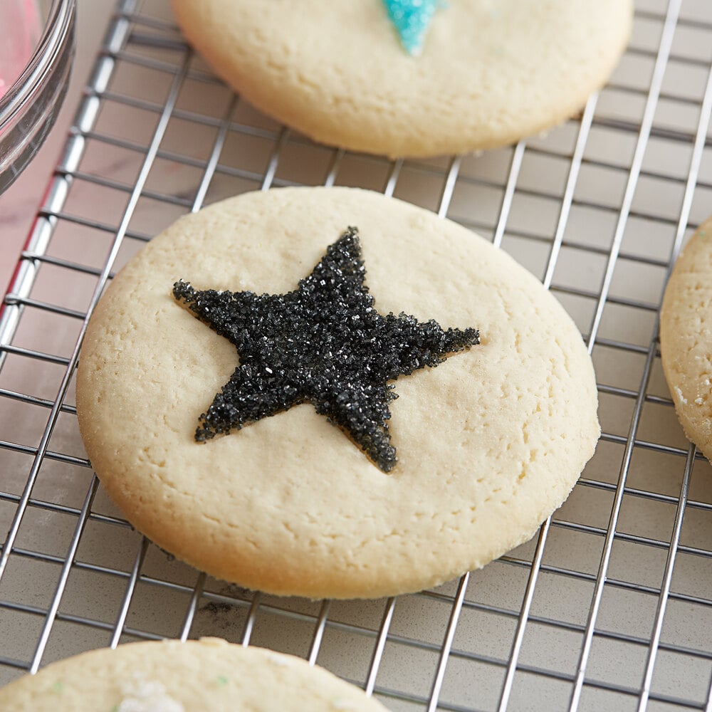 A great addition to any specialty baker and caterer's arsenal, this sanding sugar is ideal for decorating and garnishing cookies, scones, cupcakes, muffins, and candies. Its black color is great for matching guests' event color schemes, providing contrast to other vibrant colors, or simply for giving your treats a unique pop of color and glimmer!