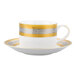 Bring an exotic presentation to your table service with this 10 Strawberry Street ELE-9 Elegance 8 oz. porcelain can cup with saucer. Featuring an unexpected, yet upscale gold and platinum pattern along the top of each cup and the rim of each saucer, this collection exudes luxury for an exquisite look, time and time again. Built to last for any occasion, this product is an excellent choice for commercial dining rooms. Not only does it add a regal look to your table settings, but the wide decorative detailing and versatile size are sure to make your most popular teas, coffees, and hot chocolate stand out during service. Ensuring durability to withstand frequent use, this item is great for serving your signature hot beverages in style.