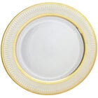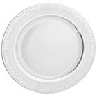 Present your signature entrees on this 10 Strawberry Street IRIANA-1SLV Iriana 10 1/4" silver porcelain dinner plate. Boasting an intricately designed rim and silver verge, this plate will brilliantly frame your food for an attractive presentation your guests will truly appreciate. The rim also features a wide, rolled construction to increase the types of foods you can serve by helping to contain sauces and juices from popular recipes like chicken alfredo or beef bolognese.