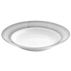 Present your signature soup or chili in this 10 Strawberry Street IRIANA-3SLV Iriana 8 oz. silver wide rim porcelain soup bowl. Boasting an intricately designed rim and silver verge, this bowl will brilliantly frame your food for an attractive presentation your guests will truly appreciate. The rim also features a wide, rolled construction to increase the types of foods you can serve by helping to contain sauces and juices from popular recipes like chicken alfredo or beef bolognese.