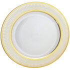 Present each delicious dinner roll on this 10 Strawberry Street IRIANA-5GLD Iriana 6" gold porcelain bread and butter plate. Boasting an intricately designed rim and gold verge, this plate will brilliantly frame your food for an attractive presentation your guests will truly appreciate. The rim also features a wide, rolled construction to increase the types of foods you can serve by helping to contain sauces.