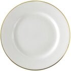 Ideal for any event, from a wedding to a dinner party, this 10 Strawberry Street SL0001 10 3/4" Silver Line porcelain dinner plate is a versatile, classic piece that's perfect for your restaurant, catering company, or other establishment. Featuring a silver, detailed rim, this white dinner plate will be the perfect serving piece for highlighting your delectable culinary creations. This product is not designed for use in the oven, dishwasher, or microwave.