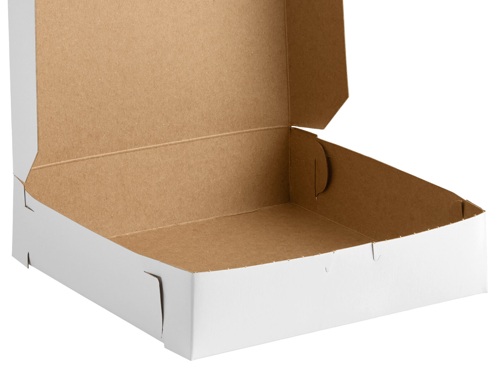 Show off your baked goods in style! The elegant white exterior of this bakery box will provide a professional feel to your establishment, while the natural brown interior creates the perfect palette to showcase your creations. The white exterior also makes it easy to customize each box with stamps or labels.