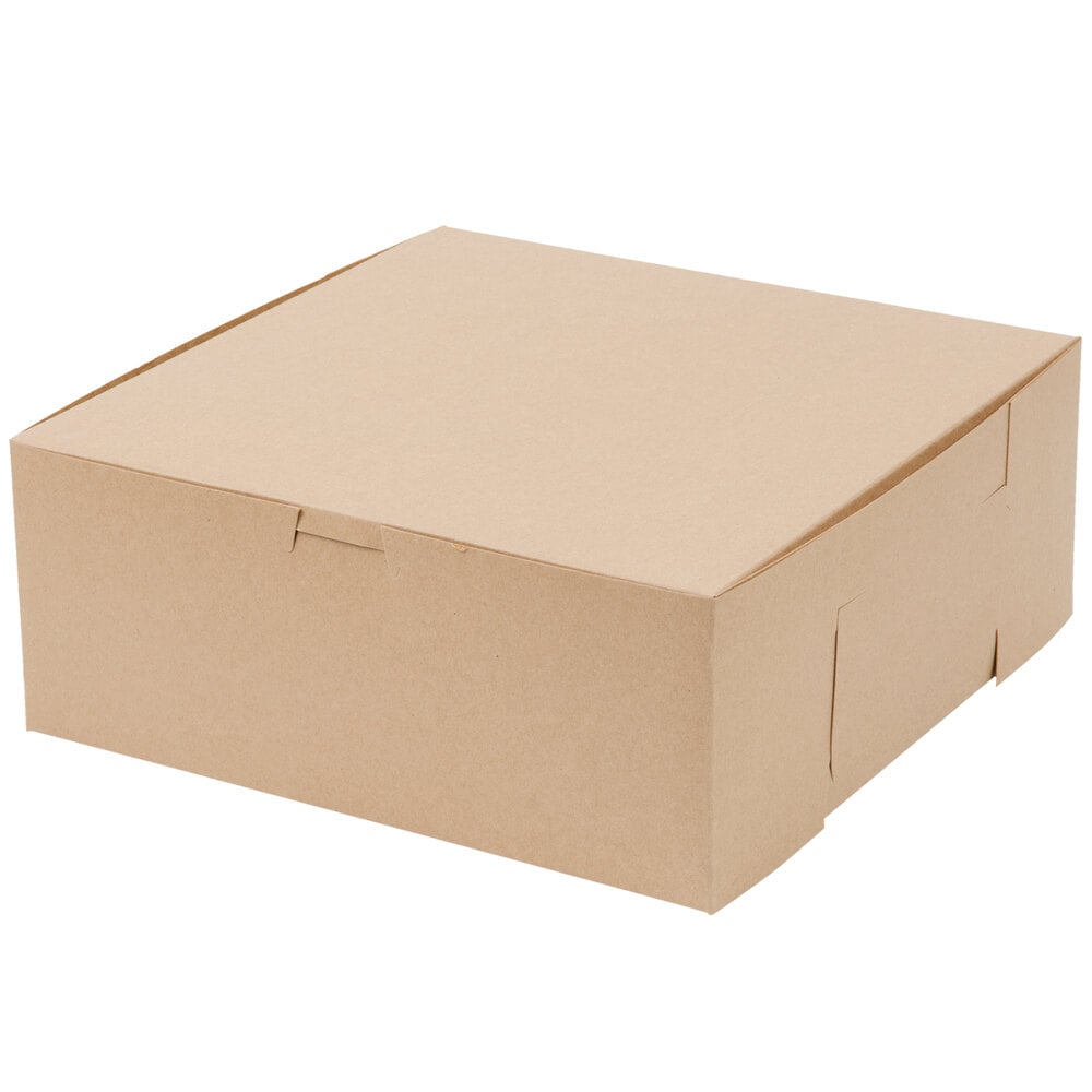 Provide customers with the perfect to-go container using this 10" x 10" x 4" kraft cake / bakery box!