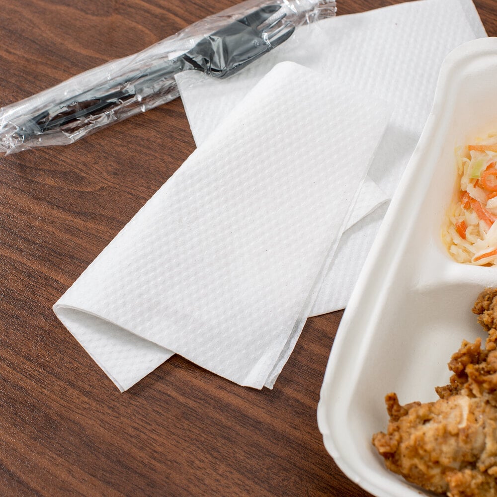 Great for pizza shops, concession stands, or catered events, this white luncheon napkin is perfect for completing your set up. Your customers, guests, and employees will appreciate having these luncheon napkins available to help clean up messes and spills in addition to keeping their hands clean.