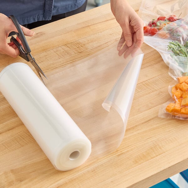 Vacuum packaging has numerous benefits and uses for any kitchen - it extends the shelf life of your foods up to 5 times longer than traditional storage methods, which in turn reduces waste and cuts down on costs. This roll of bag material is an excellent choice for your vacuum packaging needs, providing the durability a commercial kitchen requires, and the flexibility to cut custom bag sizes as needs change!