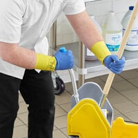 These heavy duty gloves are not only useful for warewashing, but they can be used to protect hands from harmful chemicals during janitorial or other industrial activities. Choose from various thicknesses, rubber materials, and liner materials. Our flock-lined gloves are perfect for extended use since they absorb sweat and keep hands dry, whereas a glove with no liner might be a better choice for short term use. Our wide array of features and options lets you choose the glove that’s right for you!