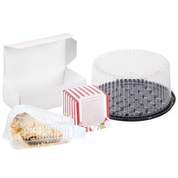 From sheet cakes to layered cakes to individual slices, merchandise your confections with cake take-out containers.