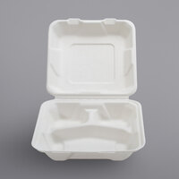 Fineline 43SHD8S3 Conserveware 8" x 8" x 3 1/8" Bagasse 3 Compartment Deep Take-Out Container - 200/Case