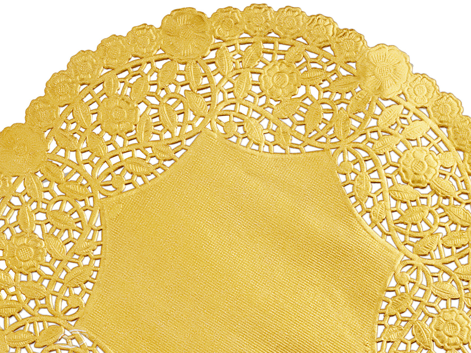 Beautiful gold foil lace doily. I bought gold plates and silverware here for a party and paired it with these gold doings for a fabulous look. Great quality.