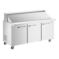 Avantco SS-PT-71M-C 70" 3 Door Mega Top Stainless Steel Refrigerated Sandwich Prep Table with 11 1/2" Cutting Board