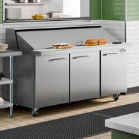 Avantco SS-PT-71M-AC 70" ADA Height 3 Door Stainless Steel Mega Top / Cutting Top Refrigerated Sandwich Prep Table with 11 1/2" Cutting Board