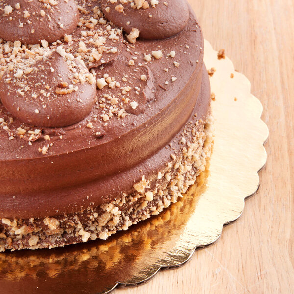 Whether serving or packaging a cake, the presentation is almost as important as how the cake tastes. This product features a decorative gold coloring that ensures your creations stand out for a stunning appearance. Plus, it is made of sturdy, single-wall corrugated cardboard to provide ample support for even the heaviest of cakes.