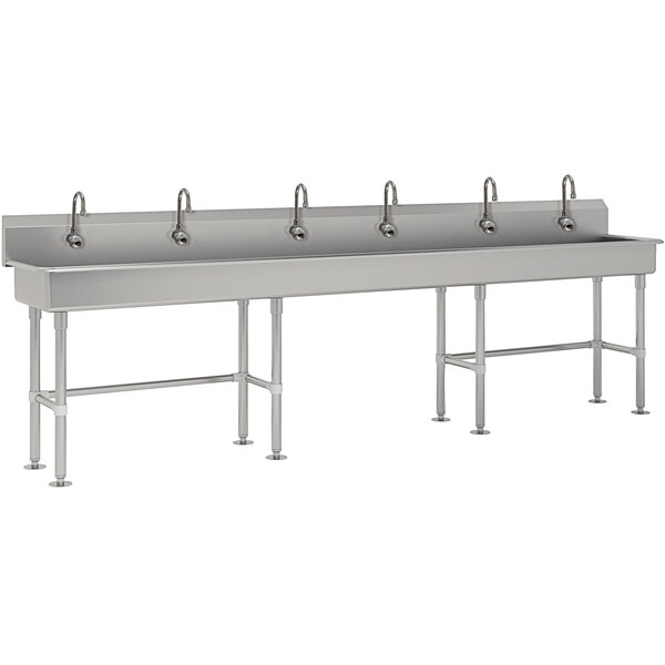 Advance Tabco FS-FM-120EFADA 14-Gauge Stainless Steel ADA Multi-Station Hand Sink with Tubular Legs, 8" Deep Bowl, and 6 Electronic Faucets - 120" x 19 1/2"