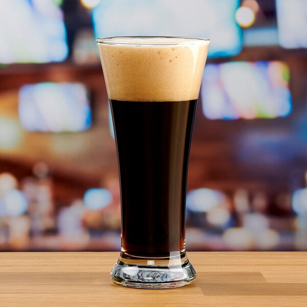 If you are looking for a cool, classy glass, add this 14 oz. pilsner glass to your shelves. Its eye-catching, flared design is great for lively bars, breweries, and restaurants; though, it can adapt to almost any setting. It exhibits beauty, convenience, and resilience. Its durable glass construction can withstand heavy-handed use. This pilsner glass will last you a long time, pleasing countless customers along the way!