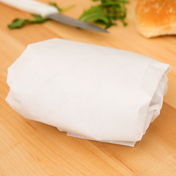Neatly wrap up your sandwiches and line your pizza boxes with this 15" x 20" heavy duty dry wax paper. An excellent choice for delis, sandwich shops, and pizza parlors, this sheet is specifically made for hot food applications and is grease resistant to help prevent messy leaks. Additionally, this sheet is microwave safe so that your customers can safely reheat leftovers or to go orders. Each sheet is pencil, pen, and marker safe so you can label each sandwich for your customers. Even with the grease resistant wax coating, this sheet is tape friendly so you can be sure that your nicely wrapped items will not fall apart in to go bags or carry out containers.