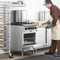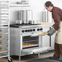 A commercial restaurant range is an essential piece of cooking equipment for any restaurant, catering business, bistro, cafeteria, dining hall, or other foodservice business. These units allow chefs to boil, steam, simmer, fry, grill, and saute foods, and models that come with ovens enable you to cook and bake items, as well. Choose from either a gas restaurant range, which has a standing pilot light, or an electric model, which eliminates the need for a gas line hookup.