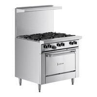A commercial restaurant range is an essential piece of cooking equipment for any restaurant, catering business, bistro, cafeteria, dining hall, or other foodservice business. These units allow chefs to boil, steam, simmer, fry, grill, and saute foods, and models that come with ovens enable you to cook and bake items, as well. Choose from either a gas restaurant range, which has a standing pilot light, or an electric model, which eliminates the need for a gas line hookup.