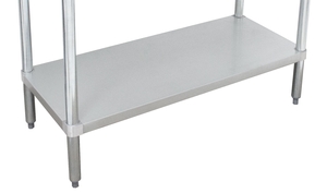 The adjustable 18-gauge galvanized steel undershelf adds versatility, allowing you to store additional supplies like cutting boards, bowls, and pans for convenient access. Plus, it is made with a larger welded surface area than the standard table to not only provide additional strength between the leg clamps and the shelf, but also to maximize usable surface area.