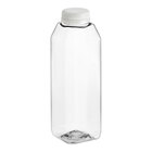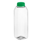 Package and sell your signature juice or beverages with this 16 oz. square rPET clear bottle with red lid. Made of recyclable rPET plastic, this bottle has the added benefit of being recyclable for easy disposal after use. With this bottle, you support a circular economy that helps eliminate waste and pollution. It features a tall, square shape that allows you to maximize your storage and display space. Its clear construction helps showcase your products, and it comes unbranded and unlabeled, allowing you to easily add your own custom label, brand, logo, or nutrition information. Use it to individually bottle your fresh-pressed juice, iced coffee, or tea for sale.