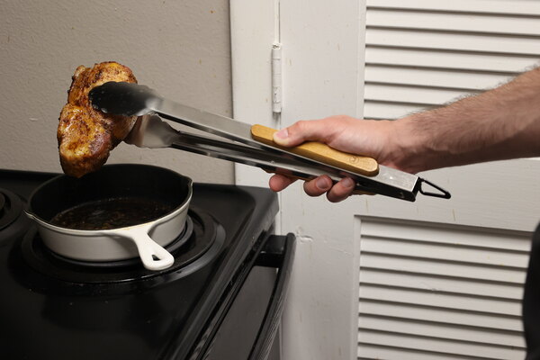 The durable stainless steel arms are guaranteed to give you the longevity you need, as stainless steel is long-lasting and resists signs of aging. Never worry about your tool bending or rusting, thanks to the extra-thick construction. Use them to pick up heavy meat cuts off the grill, or to maneuver and turn grilled produce and kebabs. The wide, scalloped utility ends gently grip foods, preserving product quality while maintaining a safe, secure hold, allowing you to easily move, rotate, and turn your food while cooking and serving. These tongs feature a convenient locking mechanism that can fasten the handles closed for easy storage. A stainless steel loop at the end of the handle also allows you to hang this tool during or after use. These tongs are great for restaurants, caterers, food trucks, and concession stands. Durable and easy-to-clean, this tool will have you asking, "how did we ever do without it?"