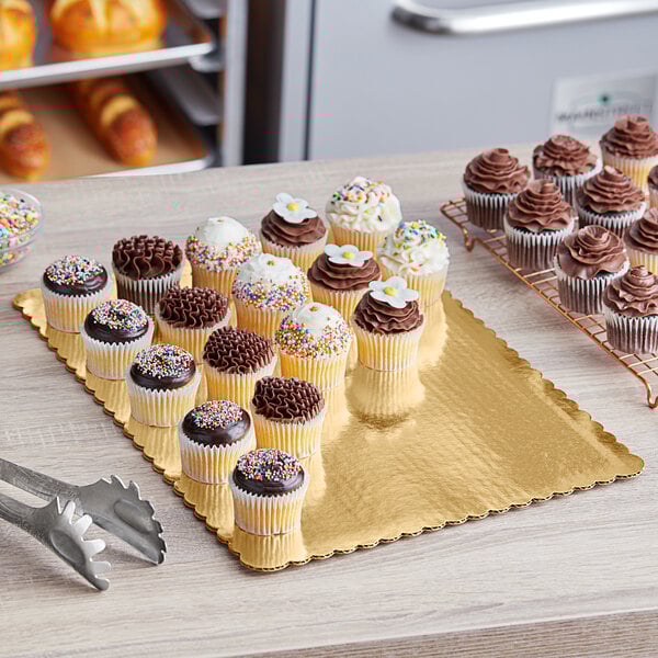 Whether serving or packaging a cake, the presentation is almost as important as how the cake tastes. This attractive sheet cake pad features decorative gold coloring to ensure a stunning appearance, and sturdy, single-walled corrugated cardboard construction for durability. Whether you own a high-end bakery or a small coffee shop that serves sweet treats, this cake support pad is the perfect addition!