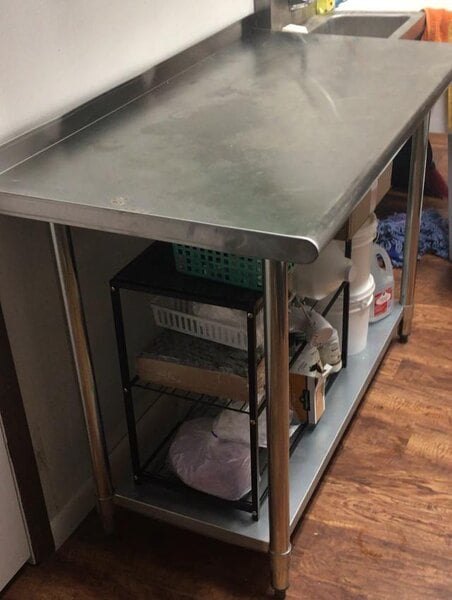 I received this table within a week of ordering, it cost substantially less than other suppliers I had looked at. The table was easy to assemble, is very sturdy and offers extra storage with an adjustable height shelf. Great purchase.