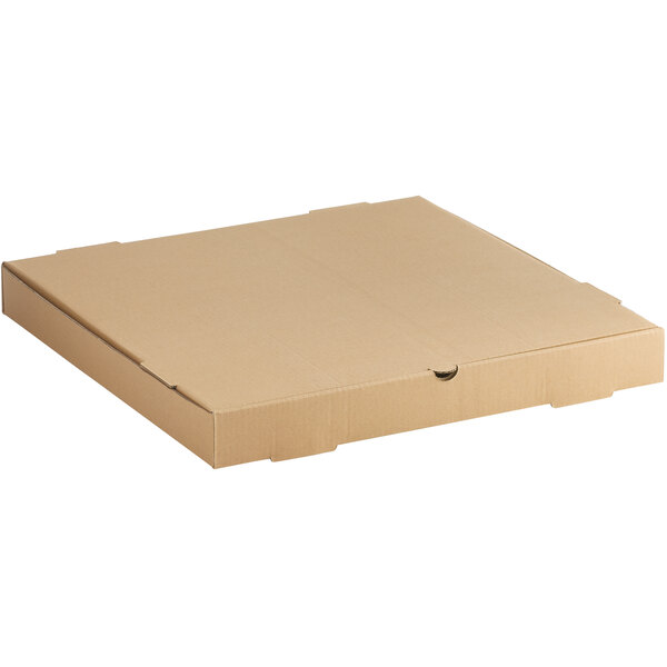 This kraft corrugated plain pizza / bakery box is a perfect addition to your restaurant or bakery! This pizza box features a durable B-flute corrugated construction, so you can trust that your box won't warp and your pizza will stay hot.