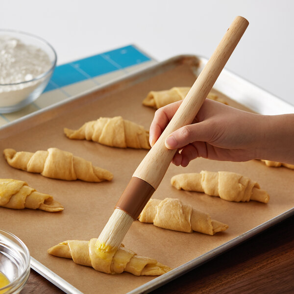 This pastry / baking brush boasts a lacquered, long-lasting hardwood handle.